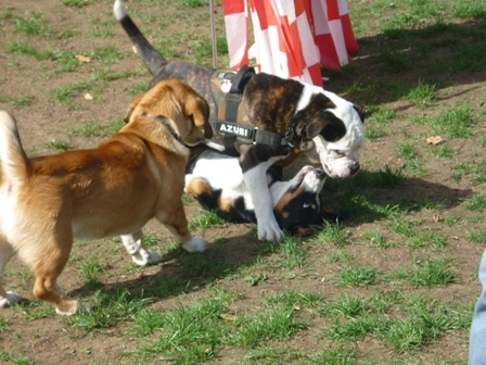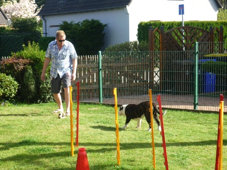 In die Hundeschule durfte ich auch wieder. Sehe immer zu, dass ich meine Aufgaben schnell erledige. Kann mich dann immer noch etwas in die Sonne legen, bis die anderen mal fertig sind *grins* War immer toll, bis Mama ein Schreiben bekam. Dort stand drin das ich nun zu gross geworden bin, und in dem Kindergarten nichts mehr zu suchen hätte. War das nun ein Rauswurf? Dachte schon ich dürfte nicht mehr dort hin, aber Mama erklärte dann, dass ich nun ein grosser bin und in die Grundschule darf. Hola, seh ich da nun richtige Chickas?? Richtige Chickas ist gut, ich weiss ja nicht mal wie ich eine zu einem Date kriegen kann:-( Also da muss ich mir vielleicht von Paul noch einige Tipps holen. Werde immer ganz nervös wenn ich eine hübsche Hündin sehe. Und wie die duften..... Grrrr ich kriege bei dem Gedanken daran schon eine Gänsehaut... Und meine Damen, sagt es mir ganz ehrlich! Na, wie sehe ich aus??