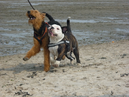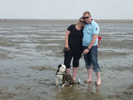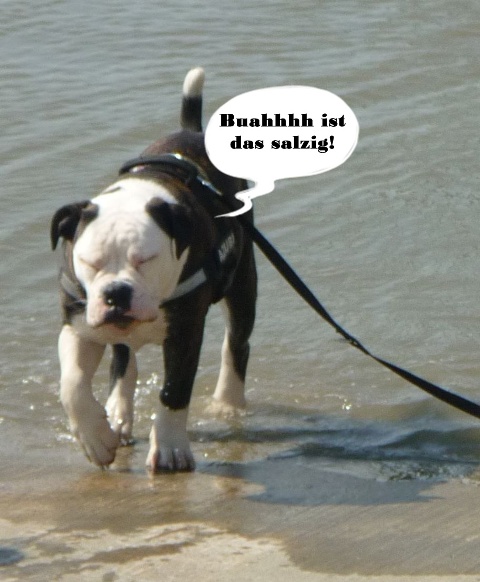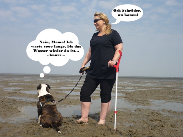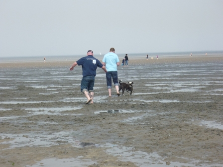 Samstag waren wir an der See! Man hab ich mich gefreut. Der Weg war etwas länger. Mama hatte mit ihrem roten Stock zu kämpfen, denn da gab es was, was die Strand und Sand nennen. Hat total gekitzelt unter den Füssen... hihi An der Wiese vorbei, eine Düne, und ZACK, die See! Ja ÄÄ! Da war das Wasser ganz weit weg:-( Ebbe nennen die das! So ein Mist! Da freut man sich darauf, und dann sowas! Hab mich hingesetzt und gewartet, aber es kam einfach nicht. Naja, dafür war da ein riieeeesiger Matschhaufen! Endlich durfte ich mich mal so richtig dreckig machen! Da lernte ich auch Lissy kennen. Die war 8 Monate alt, und ne echt heisse Braut. Haben eine Runde geflirtet, und dann ist sie auch schon weiter. Dann ging es nach Hause. Die waren zum Einkauf und haben gegrillt. Ich habe gechillt, den Garten unsicher gemacht, den Blümchen die Köpfe abgebissen, und mich hingeschmissen.