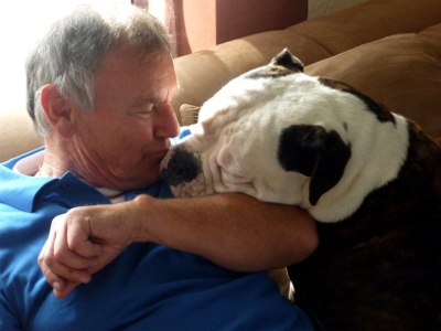 Hab Opa jetzt mal gezeigt wie lieb ich ihn habe! Er spielt draussen immer mit mir, wenn er zu Besuch kommt. Ich liebe seine Ohren! Die kann man so schön zuschlabbern, und er lacht dann immer ganz laut!