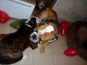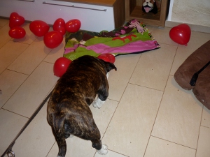 Man, die hat sich ins Zeug gelegt! Überall ♥ Luftballons und eine echte Leber-Fisch-Torte!! Yeeehhaaa Ich wurde geknuddelt und gekrault!!!